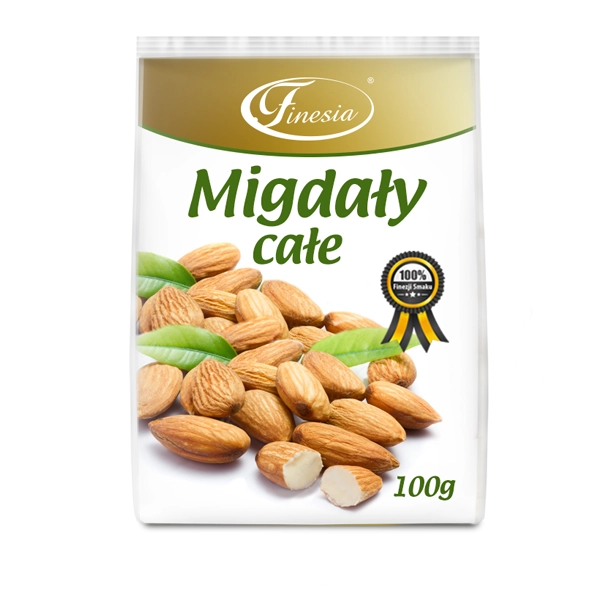 Orzechy, w tym migdały, to niedoceniane produkty w naszej codziennej diecie. Mimo wysokiej zawartości tłuszczów należą do najzdrowszych przekąsek. Tak więc oprócz wykorzystywania jako składnika do ciast i deserów warto je włączyć do codziennej diety i spożywać regularnie ze względu na zawartość nienasyconych kwasów tłuszczowych, błonnika, minerałów i witamin.Migdały są cennym źródłem dobrze przyswajalnego wapnia. 28g (ok. 23 szt. Migdałów) to 70 mg wapnia. Zawierają też sporo białka – ok. 20g w 100 g produktu. Paletyzacja: na warstwie: 420szt (35opk), na palecie: 3360szt (280opk)