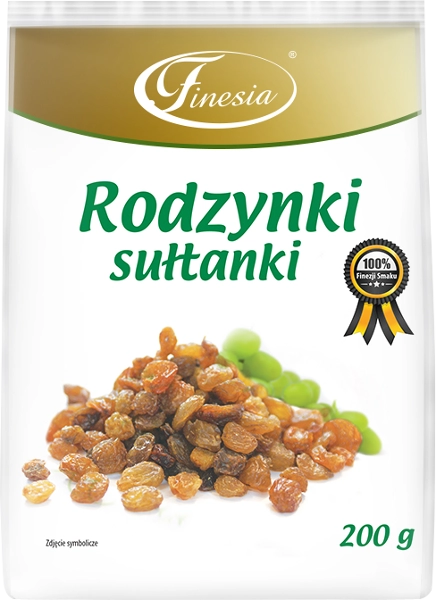 Finesia rodzynki sułtanki, selekcjonowane suszone w naturalny sposób.